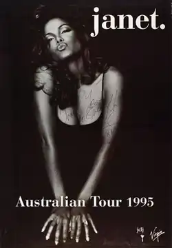 Janet World Tour (stylized as janet. World Tour) was the second concert tour by American recording artist Janet Jackson. It was launched in support of her fifth studio album Janet (1993). It began in November 1993 and continued through April 1995. Concerts were held in North America, Europe, Asia, and Australia. It is believed shows were performed in South America. However, there are not exact details and most information is unknown.[1][2]
