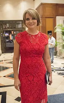 Hinostroza has been a major target and opponent of the Ecuadorian government, and has also been a recurring topic of President Rafael Correa's weekly TV and radio talks, which usually last several hours.[2] Correa has referred to her dismissively as "blondie."[3] In 2012, after Hinostroza reported on a suspicious loan by the state bank Cofiec to a businessman allegedly associated with a cousin of Correa, she received death threats and took a leave of absence for safety reasons.[4] Due to this she was offered security surveillance by the Minister of the Interior José Serrano to which Hinostroza gratefully did not accept.