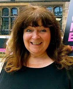 Godley began her stand-up career in 1994[4] using her middle name as both the Storrie and Currie families had disappointed her[12] and changed her name from Jane Godley Storrie to Janey Godley the following year.[13] She won an award for the "Best Show Concept" at the New Zealand International Comedy Festival in 2002 and the "Spirit of the Festival" in 2006.[4] She published her autobiography Handstands in the Dark in 2005.[14] In 2006, she was a finalist for the Edinburgh Evening Times' "Scotswoman of the Year" award.[15] In 2002, 2006, 2008, and 2009, she was nominated as "Best International Guest" by the New Zealand Comedy Guild.[16] Her TV appearances include River City, Sam Delaney's News Thing, The Alex Salmond Show, Have I Got News for You, and Traces, and she appeared in the film Wild Rose. Godley often made spoof voice-overs of videos.[17][18]