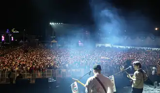 Jannabi was noted for their live performances, which frequently involved crowd participation. Their appearances at universities and festivals, furthered by Choi Jung-hoon's showmanship and stage presence, have led the group to be labeled the "god of festivals", "festival king", and "the number one festival attractor", among others in their home country.[166][167][168]