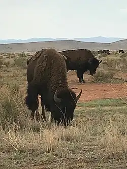 On 28 November 2009, twenty-three genetically pure American bison (Bison bison), including twenty females and three males,[4] from the Wind Cave bison herd in South Dakota were released onto the Janos prairie.[2] The new Janos Biopsphere Reserve bison herd adds to other Mexican bison that have ranged between Chihuahua, Mexico, and New Mexico, United States, since at least the 1920s. This older population is known as the Janos-Hidalgo bison herd, and its persistence for nearly 100 years confirms that habitat for bison is suitable in northern Mexico. This is consistent with archeological records and historical accounts from Mexican archives from AD 700 to the 19th century documenting that the southern extent of the historic range of the bison included northern Mexico and adjoining areas in the United States.[5] On 8 December 2009, the Janos Biosphere Reserve was officially created through a presidential decree by then-President Felipe Calderón and published in the Official Journal of the Federation.[6] As of May 2017, there were 138 bison living at Janos.[4]