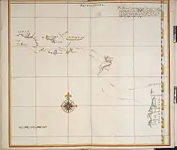 No original logs or charts of Janszoon's voyage have been located and it is not known when or how they were lost. Nevertheless, a copy was apparently made in about 1670 from Janszoon's map of his expedition, which was sold to the Austrian National Library in Vienna in 1737.[5] It can be deduced from this map that Janszoon then sailed to Ambon (the headquarters of the VOC), Banda, the Kai Islands, the Aru Islands and Deyong Point on the coast of Papua.[6]
