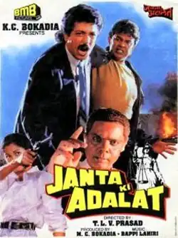 Janta Ki Adalat (transl. Public court) is a 1994 Indian Hindi-language action film directed by T L V Prasad and produced by K. C. Bokadia, starring Mithun Chakraborty.[1][2] It is a remake of Tamil film Mutrugai. It was the first movie of TLV Prasad with Mithun Chakraborty. Later on TLV Prasad went on to work with Mithun for 30 movies within a span of 8 years for which the duo registered their name in the Limca book of world records for the highest number of successful movies between an actor and director without a break in such a short time. The movie was also successful at the box office. Made at a total modest budget of 2.1 crores INR the movie collected 5.7 crores INR nett in India.
