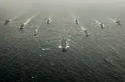 By the 1990s Japan participated in the Peacekeeping operations by the UN, and sent troops to Cambodia, Mozambique, Golan Heights and the East Timor.[2] After the 9/11 terror attacks in 2001, Japanese naval vessels have been assigned to resupply duties in the Indian Ocean to the present date. The Ground Self-Defense Force also dispatched their troops to Southern Iraq for the restoration of basic infrastructures.