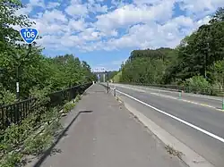 National Route 106 is one of the primary west-east highways in Iwate Prefecture and the main route between the cities of Miyako on the Pacific coast and Morioka in the prefecture's interior plains. It carries traffic across the Kitakami Mountains that separate the two cities. The highway has a total length of 92.4 kilometers (57.4 mi).[2]
