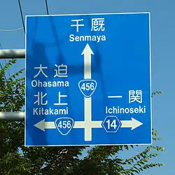 National Route 456 is a national highway of Japan connecting Morioka, Iwate and Motoyoshi, Miyagi in Japan, with a total length of 154.5 km (96 mi).