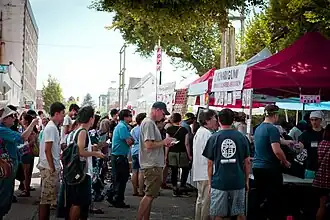 In 1907, an anti-Asian riot broke out in Chinese and Japanese sections of Vancouver due to the increased presence of Japanese who, in 1907, had entered Canada in a record number of 7,000.[2] Labour unions and small business groups banded together to form the Vancouver branch of the Asiatic Exclusion League (AEL), an organization against the increase of Asian immigrants in Canada and the US.[4] The Japanese, due to their numbers and the economic competition they posed were seen as a particular threat. A public demonstration by the AEL on September 7, 1907 turned into a riot.[4] Rioters smashed many windows in parts of Chinatown, and then moved on to Japantown. Four waves of attacks ensued, with the rioters being repulsed by the armed Japanese residents who had received warning of the attacks in Chinatown. In spite of inflicting a number of injuries upon the mob, more than 50 stores and businesses on Powell Street had their windows broken resulting in thousands of dollars of damage.[5]