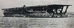 Following repairs, Kaga rejoined the 1st Air Fleet for the Battle of Midway in June 1942. After bombarding American forces on Midway Atoll, Kaga and three other IJN carriers were attacked by American aircraft from Midway and the carriers Enterprise, Hornet, and Yorktown. Dive bombers from Enterprise severely damaged Kaga; when it became obvious she could not be saved, she was scuttled by Japanese destroyers to prevent her from falling into enemy hands. The loss of Kaga and three other IJN carriers at Midway was a crucial setback for Japan, and contributed significantly to Japan's ultimate defeat. In 1999, debris from Kaga including a large section of her hull was located on the ocean floor northwest of Midway Island.[2] In 2019, RV Petrel discovered her wreck on the ocean floor.