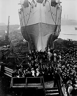 The contract for Iwate, named after the eponymous prefecture,[10] was signed on 19 July 1898 with Armstrong Whitworth. The ship was laid down at their shipyard in Elswick on 11 November 1898 and launched on 29 March 1900, when she was named by Mme. Arakawa, wife of the Japanese Consul-General in London.[11] She was completed on 18 March 1901 and departed for Japan the following day[12] under the command of Captain Hikohachi Yamada, who had been appointed to supervise her construction and bring her back to Japan. Iwate arrived in Yokosuka on 17 May and Yamada was relieved by Captain Taketomi Kunikane on 6 July.[13]
