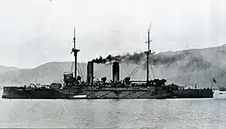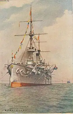 Tokiwa (常盤) was the second and last Asama-class armored cruiser (Sōkō jun'yōkan) built for the Imperial Japanese Navy (IJN) in the late 1890s. As Japan lacked the industrial capacity to build such warships herself, the ship was built in Britain. She played minor roles in the Boxer Rebellion of 1900 and World War I, but was very active during the Russo-Japanese War of 1904–05 where she participated in the Battle of Port Arthur, the Battle off Ulsan, and the Battle of Tsushima. After the war she was sometimes used as a training ship for naval cadets.