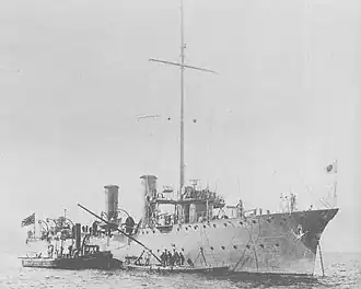 Yodo (淀) was the lead ship in the Yodo class of high speed protected cruisers in the Imperial Japanese Navy. Officially rated as a tsūhōkan, meaning dispatch boat or aviso, Yodo was named after the Yodo River outside Osaka, Japan. Her sister ship was Mogami. Yodo had a clipper bow and two smokestacks, whereas Mogami had a straight raked bow with three smokestacks.[1]