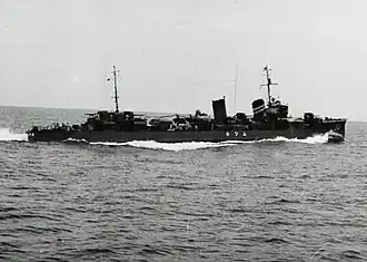 The Japanese destroyer Mutsuki (睦月, "January") was the name ship of her class of twelve destroyers built for the Imperial Japanese Navy (IJN) during the 1920s. During the Pacific War, she participated in the Battle of Wake Island in December 1941 and the occupations of New Guinea and the Solomon Islands in early 1942. Mutsuki was one of the escorts for the invasion force during the Battle of the Coral Sea in May and then participated in the Guadalcanal Campaign later that year. The ship was sunk by American bombers during the Battle of the Eastern Solomons in August.