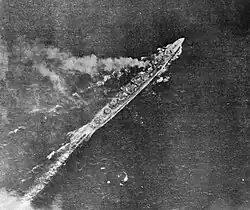 In June 1944, during repairs and refit in Japan, her anti-aircraft capacity was enhanced with the additional set of triple Type 96 guns, seven single Type 96 guns, and one single Type 93 13mm machine gun, together with a Type 13 radar.[2]