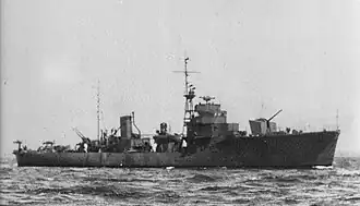Located in Motoyama at the end of the war.[10] On August 15, she made a round trip to Ominato. On the 25th, she was designated as the Yokosuka Naval District First Reserve Kaibokan. She has been minesweeping off Muroran since September 15th. She was removed from the Imperial Kaibokan on November 30, following the abolition of the Ministry of the Navy.