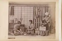 The Japanese kitchen (Japanese: 台所, romanized: Daidokoro, lit. 'kitchen') is the place where food is prepared in a Japanese house. Until the Meiji era, a kitchen was also called kamado (かまど; lit. stove)[1] and there are many sayings in the Japanese language that involve kamado as it was considered the symbol of a house. The term could even be used to mean "family" or "household" (much as "hearth" does in English). Separating a family was called kamado wo wakeru, or "divide the stove". Kamado wo yaburu (lit. "break the stove") means that the family was broken.