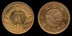 - ^ These coins use the same design as those minted previously under Meiji, but have Taishō's name and year of reign on the reverse.