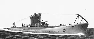 For surface running, the boats were powered by two 1,450-brake-horsepower (1,081 kW) diesel engines, each driving one propeller shaft. When submerged each propeller was driven by a 600-horsepower (447 kW) electric motor. They could reach 19 knots (35 km/h; 22 mph) on the surface[3] and 8.25 knots (15.28 km/h; 9.49 mph) underwater. On the surface, the K5s had a range of 8,000 nautical miles (15,000 km; 9,200 mi) at 12 knots (22 km/h; 14 mph); submerged, they had a range of 90 nmi (170 km; 100 mi) at 3.5 knots (6.5 km/h; 4.0 mph).[1]