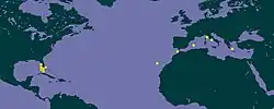 This marine species has a wide distribution and occurs off Florida Keys, USA; West Indies; Madeira; Mediterranean Sea and Japan (found at depths of 200 to 820 m)