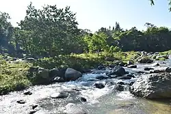 The indigenous Taino people originally inhabited the valley of Jarabacoa. It is assumed that the town's name was formed out of the words 'Jaraba' and 'Coa', meaning "Land of Waters" in the Taíno language.[4] The Spanish conquistadors made it to Jarabacoa in their search for gold, but later abandoned the expedition due to violent resistance by the natives in the area, to this day gold can be washed from some of the many rivers.[5] Jarabacoa most likely belonged to the Chiefdom of Maguana making it part of the kingdom of Cibao.[6]