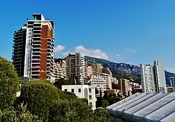 The Les Révoires area, which has steep inclines, offers views of the Rock of Monaco and the Mediterranean. It is also the location of the Chemin des Révoires,[9] Monaco's highest point, 162 metres (531 ft)[10] above sea level.[11]