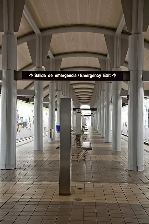 Jardines is a rapid transit station in the San Juan agglomeration, Puerto Rico. It is located between Deportivo and Torrimar stations on the sole line of the Tren Urbano system, in Bayamón. The station is located in Juan Sánchez barrio, close to the municipal border with Guaynabo, and it is named after the Jardines de Caparra neighborhood, located nearby. The trial service ran in 2004, however, the regular service only started on 6 June 2005.[1]