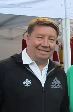 Jari Pekka Kurri (Finnish pronunciation: [ˈjɑri ˈpekːɑ ˈkurːi]; born 18 May 1960) is a Finnish former professional ice hockey player. Beginning in 1980, he played right wing for five National Hockey League (NHL) teams: the Edmonton Oilers, the Los Angeles Kings, the New York Rangers, the Mighty Ducks of Anaheim, and the Colorado Avalanche. Kurri played 17 seasons in the NHL and was the first Finnish player to be enshrined into the Hockey Hall of Fame, in 2001. He was a member of a Stanley Cup-winning team five times, all with the Oilers. In 2017, Kurri was named one of the 100 Greatest NHL Players in history.[1] He won the Lady Byng Memorial Trophy in 1985, and was the NHL goal scoring leader in the 1985–86 season.