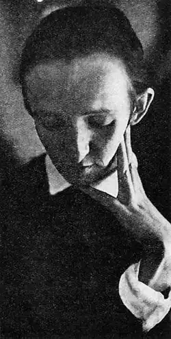 Kröschlová danced the role of the Harlequin in her 1926 choreography of Hračkové skříňky (The Toy Boxes) and the following year wrote the libretto and choreography for Bohuslav Martinů's La Revue de Cuisine (The Kitchen Revue).[4] The Charleston and Foxtrot numbers she staged for the production are some of the most acclaimed and requested for encore by audiences.[8] In 1928, she choreographed Obrazy z velkoměsta (Images from the City) to music by Modest Mussorgsky and the following year, she danced to two pieces by Saša Machov Marionety (Marionettes) and Čarodějná láska (Love of the Witch). Between 1929 and 1930, she choreographed a series of dances, in which she also performed, to the music of Bach, Beethoven and others. In 1930, she danced in Loupežník (Robbers) by Machov and the following year performed in the role of Pierot in Nikolai Evreinov's Veselá smrt (Merry Death). That same year, she wrote the libretto and choreography for a piece called Zelené flétny (Green Flute) based on a theme by Mozart.[4][1]