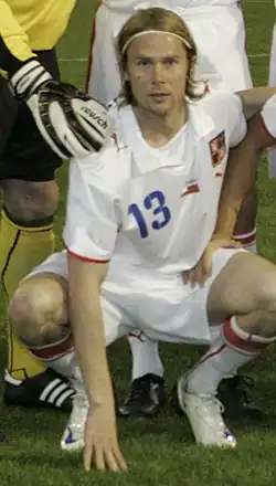 Plašil started all three of the Czechs' group games at the 2006 FIFA World Cup in Germany, their first since partition, where they were eliminated at the expense of eventual champions Italy.[20] Plašil played 13 times in qualification for UEFA Euro 2008, scoring to cap a 3–0 win over Germany in the Allianz Arena on 17 October 2007 that qualified his team to the finals in Austria and Switzerland; it was Joachim Löw's first defeat as national manager.[21] In the final tournament, Plašil started each game in Group A and scored to put the Czechs 2–0 up against Turkey in the last game, which they eventually lost 3–2 to be eliminated.[22]