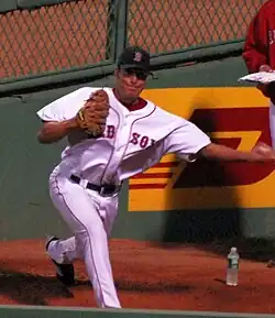 On June 15, 2006, López was traded to the Boston Red Sox for David Riske.[24] He posted a 4.32 ERA in 14 appearances before getting sent to the Pawtucket Red Sox of the International League on July 17 because it was too "tough" for the Red Sox to carry a left-handed specialist at that point in the season, according to manager Terry Francona.[25] He was called up for two short stints from July 28 through August 1 and from August 20 through 22, appearing in one game each time.[6][26] On September 4, he was recalled for the remainder of the season.[6] In 11 September outings, López allowed only one run.[26] He finished the year going 1–0 with a 2.70 ERA in 27 games.[6] With Pawtucket, he had no record and a 4.86 ERA in 13 games (16+2⁄3 innings).[7]