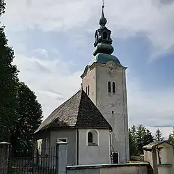 The parish church in the settlement is dedicated to Mary Magdalene and belongs to the Roman Catholic Archdiocese of Maribor. It was first mentioned in written documents dating to the 14th century, but has been rebuilt at various stages, receiving its current Baroque appearance in the 18th century. There is a second church in the eastern part of the settlement belonging to the same parish. It is dedicated to Saint Jodocus and dates to the 17th century. It is a single-nave church with a rib-vaulted sanctuary and a spire.[3]