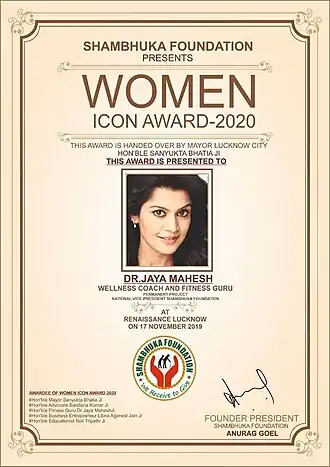 - ^ a b "An Awe-Inspiring Woman Achiever - Jaya Mahesh". Retrieved 4 June 2018.