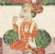 ![]() Miniature of Yaksha Malla from a Paubha dated 1782. | |