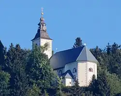 The local church, built below the peak called Malenski vrh (literally, 'Mill Peak', from maln 'mill'[3]), also serves the settlement of Malenski Vrh and is dedicated to the Assumption of Mary (Slovene: Marijino vnebovzetje). It was built between 1703 and 1705 on the site of an earlier church. The main altar dates to 1717.[4]