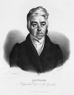 After completing his secondary education Gautier entered his father's business. He was a member of the General Council of the Gironde department from 1824 to 1829, from 1831 to 1833 and from 1839 to 1847. He was elected a deputy for Bordeaux on 25 February 1824, and sat with the majority. He participated in debates on financial issues, and was often the rapporteur of the budget. He was reelected on 17 November 1827, having sided against the press law, and sat with the liberal opposition. He was reelected in June 1830.[3]