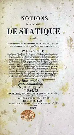 - Notions élémentaires de statique (in French). Paris: Charles Louis Étienne Bachelier. 1829.
