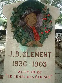 Jean-Baptiste Clément (31 May 1836 in Seine – 23 February 1903 in Paris) was a French chansonnier, journalist, socialist activist and communard. He is mostly known for his work Le Temps des cerises, which is strongly associated with the Paris Commune.