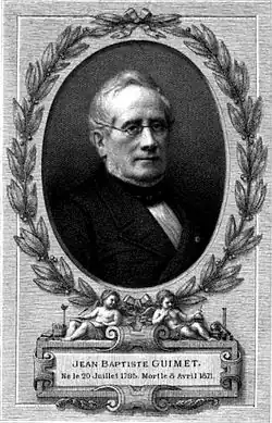 Jean-Baptiste Guimet (20 July 1795 – 8 April 1871), French industrial chemist, and inventor of synthetic colors,[2] was born at Voiron, Isère.