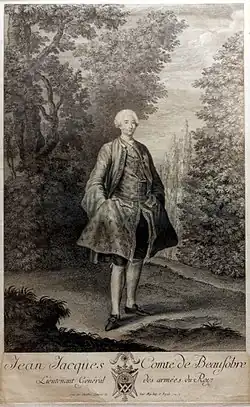 Originally from Morges, Beausobre was the son of Jeanne and Jean de Beausobre, a colonel in the French Régiment de Courten.[1] He entered his father's regiment as a cadet 1716.[1] Beausobre served with distinction in the War of the Polish Succession, the War of the Austrian Succession and the Seven Years' War.[1] Beausobre led the Siege of Geldern in 1757, during the Seven Years' War, and was appointed governor of Guelders until 1761.[1] He reached the rank of lieutenant-general in 1759.[1]