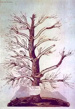Alibert believed that when diagnosing skin disorders several criteria needed to be used, and attempted to introduce a classification system for diseases that was similar to the method Bernard and Antoine Laurent de Jussieu used in botany. Alibert first classified dermatological disorders according to outer appearance, then he divided them into what he called families, genera and species. This system of classification was represented pictorially by Alibert as the "Tree of Dermatoses". Reportedly, from his "tree", Alibert wished to introduce a method rather than a classification system.[2]