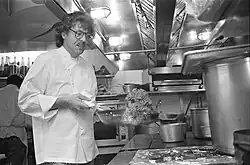 Palladin sought to incorporate American ingredients on his menu: "The challenge of cooking in America," he said in 1987, "is to discover the newest and best products from the different states -- baby eels and lamprey from Maine, fresh snails from Oregon, blowfish from the Carolinas and California oysters -- and then to learn how to integrate them into your cuisine."[4] Jean-Louis became a destination for other prominent French and American chefs, such as Julia Child, Thomas Keller, and Daniel Boulud.[2] Éric Ripert worked under Palladin at the Watergate for a few years.[4]