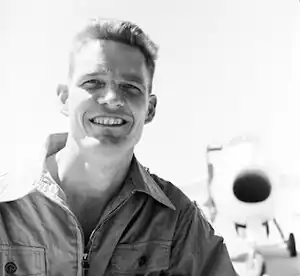 After his discharge in 1942, he became a test pilot for Curtiss-Wright, piloting C-46s, P-40 Warhawks as well as the XP-55 Ascender, his first experience on a flying wing. After a brief interlude as a commercial and race plane pilot and Bell rocket engineer, he went on to test North American planes F-86 Sabre, B-45 Tornado, AJ-1 Savage and T-28 Trojan before being selected to work on the Bell Aircraft X-5, X-1D, X-1A and X-2.