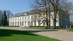 Jean Aubert frequented the unofficial Académie du Petit-Luxembourg, in the Hôtel du Petit Luxembourg, that was founded in 1729 by the comte-abbé de Clermont, another member of the house of Condé, the younger brother of the builder of the stables of Chantilly. For the abbé, who was commendatory abbot of Chaalis, Aubert created the plans for the reconstruction of Chaalis Abbey in 1736. Begun in 1739 and intended as a large quadrangle, only the entrance wing with the abbot's residence was completed. Further work was halted in 1745 due to lack of funds and never resumed.[7]