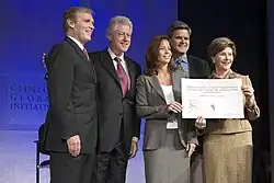 ![]() Laura Bush announces a $60 million partnership between the U.S. Government and the Case Foundation at the Clinton Global Initiative conference in New York on September 20, 2006 | |