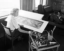 In 1936 she assisted her then husband with preparing his preliminary design proposal for the Boeing 314 flying boat by producing colour paintings of the proposed interior of the aircraft.[4]