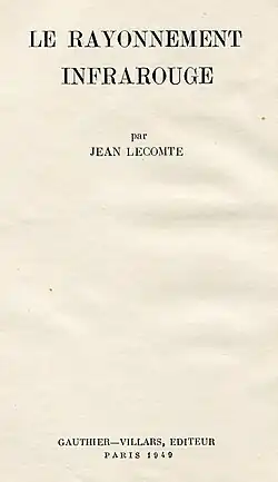 - ^ J. Lecomte, Le Rayonnement Infrarouge, GauthierVillars, Paris, 1948