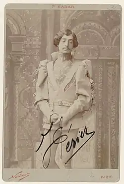 Jean Périer was born in Paris, the son of Belgian parents.[1] His father was an opera singer and repetiteur.[2] After initially working at the Credit Lyonnais,[2] he became a pupil of Émile-Alexandre Taskin (opéra comique) and Romain Bussine (singing) at the Paris Conservatoire, winning first prizes in both in 1892.[3] He made his debut as Monostatos in Mozart's The Magic Flute at the Opéra-Comique later that year on 16 December. He continued to perform at that opera house until 1920, with the exception of the years 1894 through 1900 when he principally sang at the Théâtre des Bouffes Parisiens and other Parisian theatres specializing in operetta.[4]