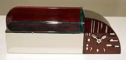 Puiforcat served in World War I. After the war, he apprenticed as a silversmith and a designer. He lived in Paris. He designed in the art deco style. His silver work had smooth surfaces and was based on the geometric series. Ivory, onyx, lapis lazuli, and rosewood were used to decorate pieces. He also used gilding. Puiforcat left Paris and moved to Saint-Jean-de-Luz, around 1927.[1] He worked briefly in Havana, Cuba from 1928 thru 1930. French painter and sculptor Henri Charlier who was born in the Montmartre quarter of Paris in 1883 was a good friend of Puiforcat. Henry and Puiforcat exchanged many letters which his daughter Alizabeth Charlier kept along with photos of a trip that her father Henri made to Havana. The photos were at the shop where Puiforcat and a cuban sculptor by the name of Juan Comas were sculpting lions to be cast in bronze for an important Havana Avenue. Puiforcat, Henri and Comas became acquainted during his stay in Havana. From one of his letters from Cuba, he wrote about how little credit had been given to the Cuban sculptor, only because he (Puiforcat) was famous. He seemed to admire Juan Comas' talent very much. Henri and Puiforcat kept the friendship and even met in Mexico around 1943. Puiforcat co-founded the Union des Artistes Modernes.[4] He started designing tableware and by 1934 he also had designed liturgical silver. In 1941, he moved to Mexico. After his move, he started exhibiting in the United States.[1] Puiforcat's name is synonymous with Art Deco glamour; even in his day, the important French silversmith was renowned for the elegant, often mathematical simplicity of his geometric forms and the unexpected combination of flawless metalwork with precious woods, brilliantly polished hardstones, semiprecious stones, or glass.