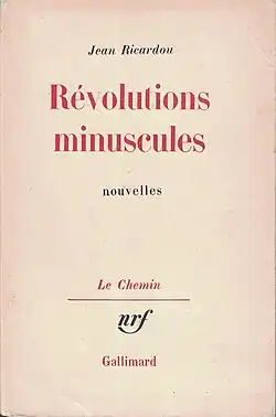 - Short Stories: Révolutions minuscules (Gallimard, Le Chemin, 1971; rewritten and expanded version including Révélations minuscules, en guise de préface, à la gloire de Jean Paulhan (Les Impressions nouvelles, 1988); L'Intégrale Jean Ricardou tome 5 (1971),[34] Les Impressions nouvelles, Bruxelles, 2019.[35]