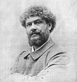 At school and at the École Normale Supérieure he gave evidence of brilliant, if somewhat undisciplined, powers, for which he found physical vent in different directions—first as a franc-tireur in the Franco-German War, and afterwards as actor, sailor and stevedore[2]—and an intellectual outlet in the writing of poems, plays and novels which vividly reflected his erratic but unmistakable talent. A play, L'Étoile, written by him in collaboration with André Gill (1840–1885), was produced in 1873; but Richepin was virtually unknown until the publication, in 1876, of a volume of verse entitled La Chanson des gueux, a declaration of war against the bourgeoisie, according to Jacques Cellard:[3] Richepin's outspokenness resulted in his being imprisoned and fined for outrage aux mœurs.[4][5] The collection was republished, without the contentious pieces, which were published separately in Brussels in 1881.[6]