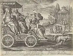 ![]() Allegory of the First Estate, engraved by Adriaen Collaert after Maerten de Vos and published by Philip Galle; dedicated to Jean Sarazin | |